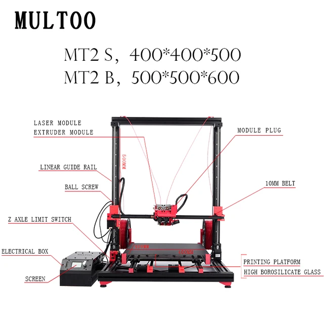 Cheap MULTOO 3D Printer MT2 Large 3D Printer Precise Low price 400*400*500 Ball screw Single Dual 3D Printer High Quality Precision